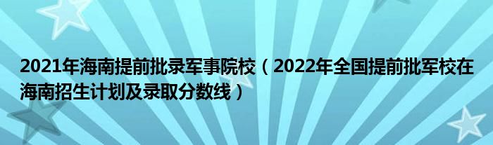 大家好,小高来为大家解答以上问题。2021年海南提前批录军事院校,2022年全国提前批军校在海南招生计划及录取分数线很多人还不知道,现在让我们一起来看看吧!