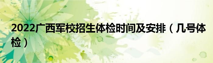 大家好,小高来为大家解答以上问题。2022广西军校招生体检时间及安排,几号体检很多人还不知道,现在让我们一起来看看吧!