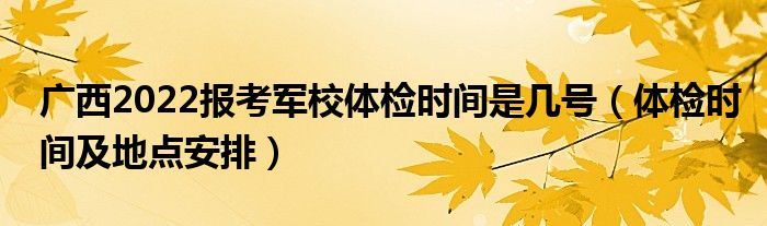 大家好,小高来为大家解答以上问题。广西2022报考军校体检时间是几号,体检时间及地点安排很多人还不知道,现在让我们一起来看看吧!