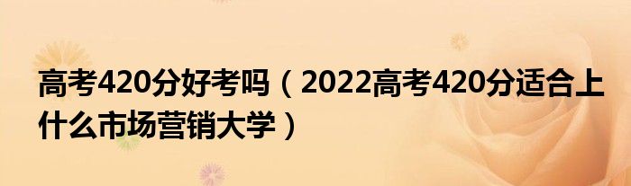 大家好,小高来为大家解答以上问题。高考420分好考吗,2022高考420分适合上什么市场营销大学很多人还不知道,现在让我们一起来看看吧!