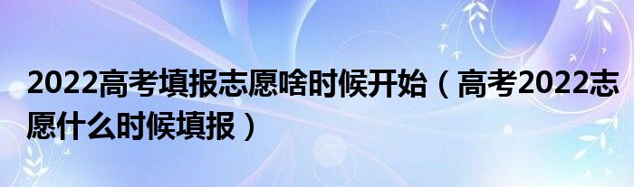 大家好,小高来为大家解答以上问题。2022高考填报志愿啥时候开始,高考2022志愿什么时候填报很多人还不知道,现在让我们一起来看看吧!