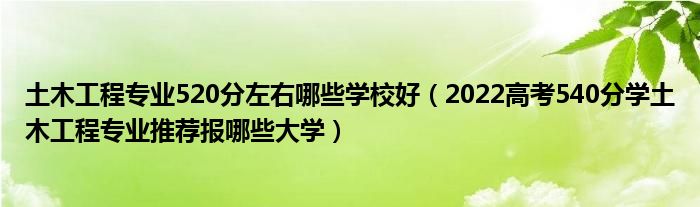 大家好,小高来为大家解答以上问题。土木工程专业520分左右哪些学校好,2022高考540分学土木工程专业推荐报哪些大学很多人还不知道,现在让我们一起来看看吧!