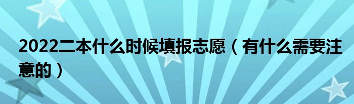 大家好,小高来为大家解答以上问题。2022二本什么时候填报志愿,有什么需要注意的很多人还不知道,现在让我们一起来看看吧!