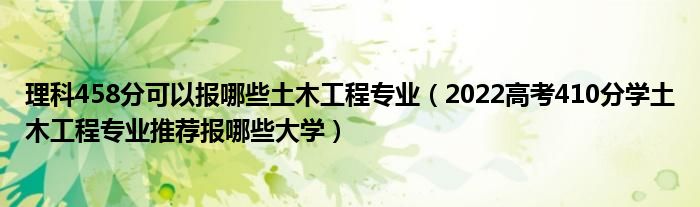 大家好,小高来为大家解答以上问题。理科458分可以报哪些土木工程专业,2022高考410分学土木工程专业推荐报哪些大学很多人还不知道,现在让我们一起来看看吧!