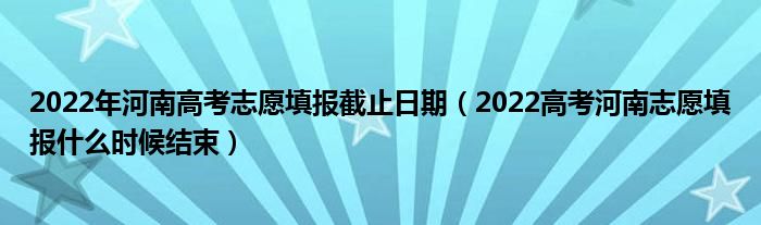 大家好,小高来为大家解答以上问题。2022年河南高考志愿填报截止日期,2022高考河南志愿填报什么时候结束很多人还不知道,现在让我们一起来看看吧!