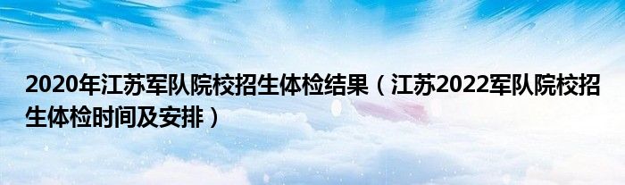 大家好,小高来为大家解答以上问题。2020年江苏军队院校招生体检结果,江苏2022军队院校招生体检时间及安排很多人还不知道,现在让我们一起来看看吧!