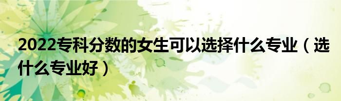 大家好,小高来为大家解答以上问题。2022专科分数的女生可以选择什么专业,选什么专业好很多人还不知道,现在让我们一起来看看吧!