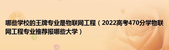 大家好,小高来为大家解答以上问题。哪些学校的王牌专业是物联网工程,2022高考470分学物联网工程专业推荐报哪些大学很多人还不知道,现在让我们一起来看看吧!