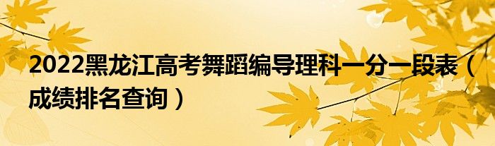 大家好,小高来为大家解答以上问题。2022黑龙江高考舞蹈编导理科一分一段表,成绩排名查询很多人还不知道,现在让我们一起来看看吧!