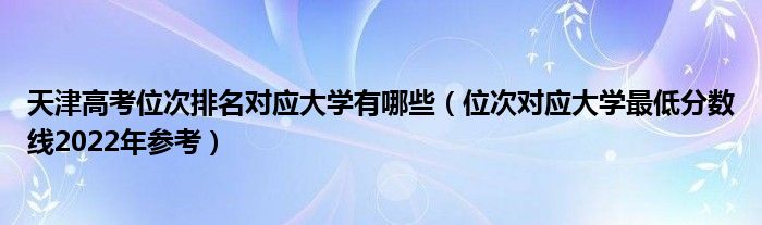大家好,小高来为大家解答以上问题。天津高考位次排名对应大学有哪些,位次对应大学最低分数线2022年参考很多人还不知道,现在让我们一起来看看吧!