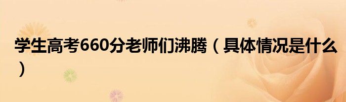 大家好,小高来为大家解答以上问题。学生高考660分老师们沸腾,具体情况是什么很多人还不知道,现在让我们一起来看看吧!