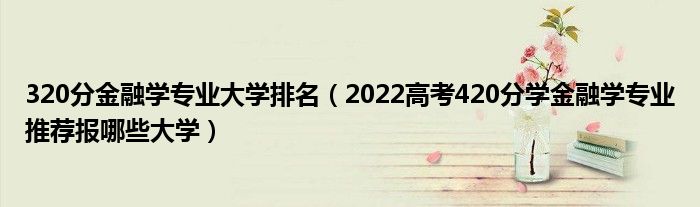 大家好,小高来为大家解答以上问题。320分金融学专业大学排名,2022高考420分学金融学专业推荐报哪些大学很多人还不知道,现在让我们一起来看看吧!