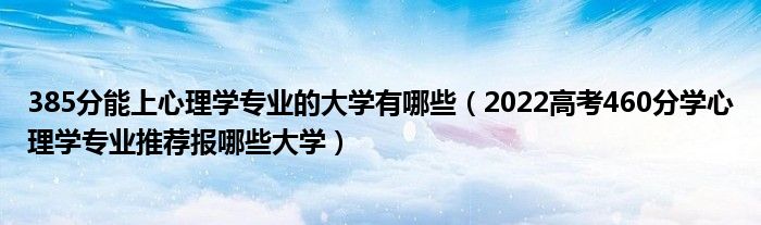 大家好,小高来为大家解答以上问题。385分能上心理学专业的大学有哪些,2022高考460分学心理学专业推荐报哪些大学很多人还不知道,现在让我们一起来看看吧!