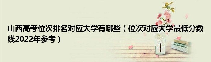 大家好,小高来为大家解答以上问题。山西高考位次排名对应大学有哪些,位次对应大学最低分数线2022年参考很多人还不知道,现在让我们一起来看看吧!