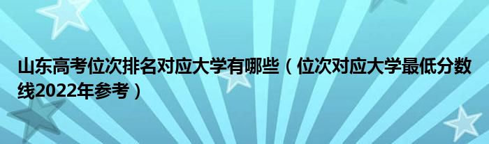 大家好,小高来为大家解答以上问题。山东高考位次排名对应大学有哪些,位次对应大学最低分数线2022年参考很多人还不知道,现在让我们一起来看看吧!
