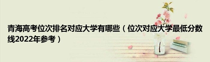 大家好,小高来为大家解答以上问题。青海高考位次排名对应大学有哪些,位次对应大学最低分数线2022年参考很多人还不知道,现在让我们一起来看看吧!