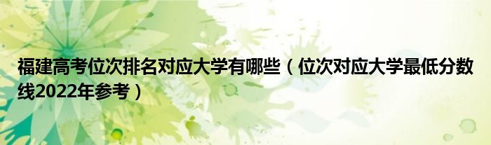 大家好,小高来为大家解答以上问题。福建高考位次排名对应大学有哪些,位次对应大学最低分数线2022年参考很多人还不知道,现在让我们一起来看看吧!