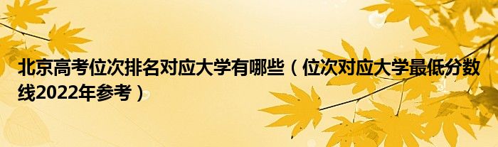 大家好,小高来为大家解答以上问题。北京高考位次排名对应大学有哪些,位次对应大学最低分数线2022年参考很多人还不知道,现在让我们一起来看看吧!
