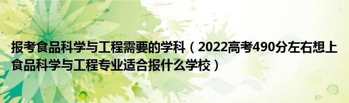 大家好,小高来为大家解答以上问题。报考食品科学与工程需要的学科,2022高考490分左右想上食品科学与工程专业适合报什么学校很多人还不知道,现在让我们一起来看看吧!