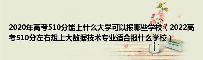 大家好,小高来为大家解答以上问题。2020年高考510分能上什么大学可以报哪些学校,2022高考510分左右想上大数据技术专业适合报什么学校很多人还不知道,现在让我们一起来看看吧!