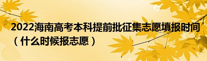 大家好,小高来为大家解答以上问题。2022海南高考本科提前批征集志愿填报时间,什么时候报志愿很多人还不知道,现在让我们一起来看看吧!