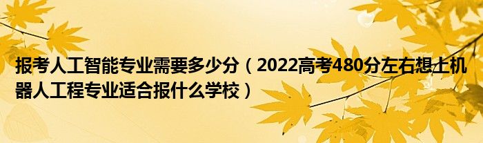 大家好,小高来为大家解答以上问题。报考人工智能专业需要多少分,2022高考480分左右想上机器人工程专业适合报什么学校很多人还不知道,现在让我们一起来看看吧!