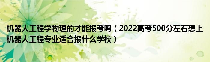 大家好,小高来为大家解答以上问题。机器人工程学物理的才能报考吗,2022高考500分左右想上机器人工程专业适合报什么学校很多人还不知道,现在让我们一起来看看吧!