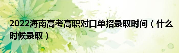 大家好,小高来为大家解答以上问题。2022海南高考高职对口单招录取时间,什么时候录取很多人还不知道,现在让我们一起来看看吧!