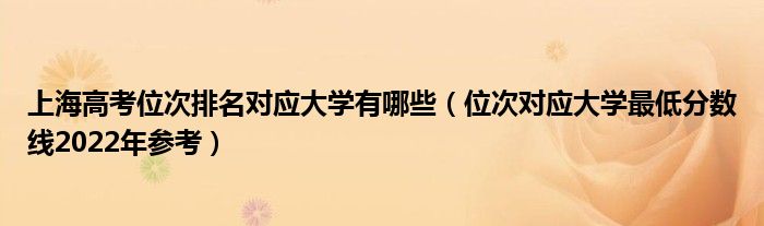 大家好,小高来为大家解答以上问题。上海高考位次排名对应大学有哪些,位次对应大学最低分数线2022年参考很多人还不知道,现在让我们一起来看看吧!