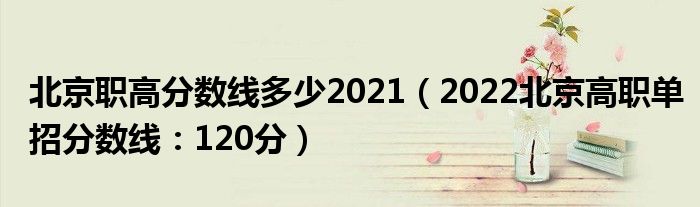 大家好,小高来为大家解答以上问题。北京职高分数线多少2021,2022北京高职单招分数线:120分很多人还不知道,现在让我们一起来看看吧!