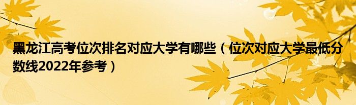 大家好,小高来为大家解答以上问题。黑龙江高考位次排名对应大学有哪些,位次对应大学最低分数线2022年参考很多人还不知道,现在让我们一起来看看吧!