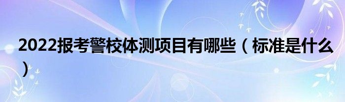 大家好,小高来为大家解答以上问题。2022报考警校体测项目有哪些,标准是什么很多人还不知道,现在让我们一起来看看吧!