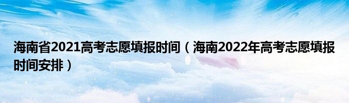 大家好,小高来为大家解答以上问题。海南省2021高考志愿填报时间,海南2022年高考志愿填报时间安排很多人还不知道,现在让我们一起来看看吧!