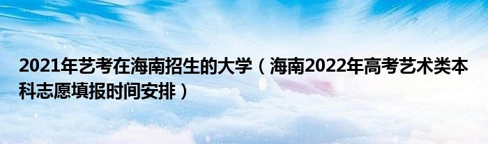 大家好,小高来为大家解答以上问题。2021年艺考在海南招生的大学,海南2022年高考艺术类本科志愿填报时间安排很多人还不知道,现在让我们一起来看看吧!