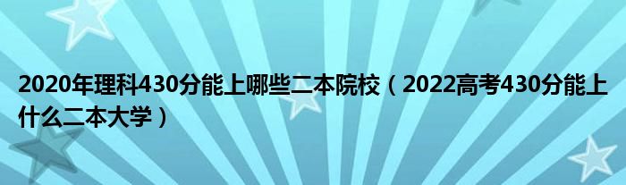 大家好,小高来为大家解答以上问题。2020年理科430分能上哪些二本院校,2022高考430分能上什么二本大学很多人还不知道,现在让我们一起来看看吧!
