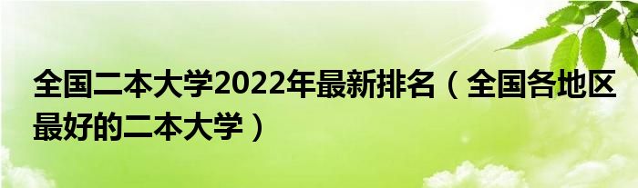 大家好,小高来为大家解答以上问题。全国二本大学2022年最新排名,全国各地区最好的二本大学很多人还不知道,现在让我们一起来看看吧!