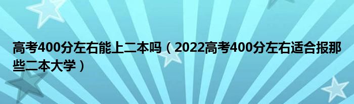 大家好,小高来为大家解答以上问题。高考400分左右能上二本吗,2022高考400分左右适合报那些二本大学很多人还不知道,现在让我们一起来看看吧!
