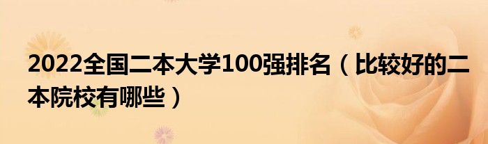 大家好,小高来为大家解答以上问题。2022全国二本大学100强排名,比较好的二本院校有哪些很多人还不知道,现在让我们一起来看看吧!