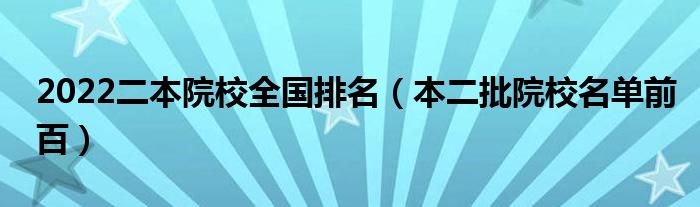 大家好,小高来为大家解答以上问题。2022二本院校全国排名,本二批院校名单前百很多人还不知道,现在让我们一起来看看吧!