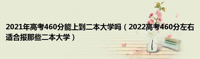 大家好,小高来为大家解答以上问题。2021年高考460分能上到二本大学吗,2022高考460分左右适合报那些二本大学很多人还不知道,现在让我们一起来看看吧!