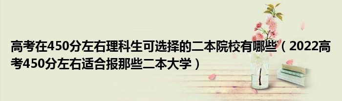 大家好,小高来为大家解答以上问题。高考在450分左右理科生可选择的二本院校有哪些,2022高考450分左右适合报那些二本大学很多人还不知道,现在让我们一起来看看吧!