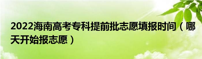 大家好,小高来为大家解答以上问题。2022海南高考专科提前批志愿填报时间,哪天开始报志愿很多人还不知道,现在让我们一起来看看吧!