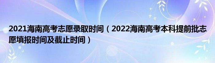 大家好,小高来为大家解答以上问题。2021海南高考志愿录取时间,2022海南高考本科提前批志愿填报时间及截止时间很多人还不知道,现在让我们一起来看看吧!