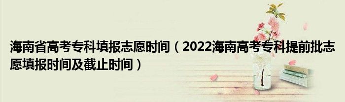 大家好,小高来为大家解答以上问题。海南省高考专科填报志愿时间,2022海南高考专科提前批志愿填报时间及截止时间很多人还不知道,现在让我们一起来看看吧!