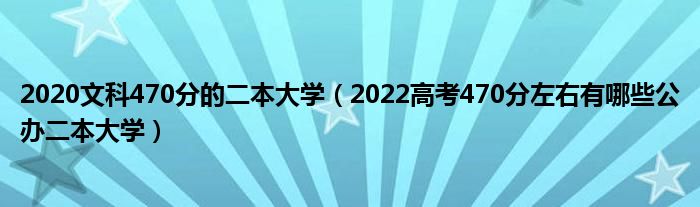 大家好,小高来为大家解答以上问题。2020文科470分的二本大学,2022高考470分左右有哪些公办二本大学很多人还不知道,现在让我们一起来看看吧!