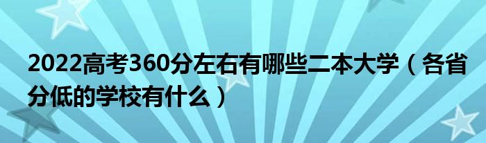 大家好,小高来为大家解答以上问题。2022高考360分左右有哪些二本大学,各省分低的学校有什么很多人还不知道,现在让我们一起来看看吧!