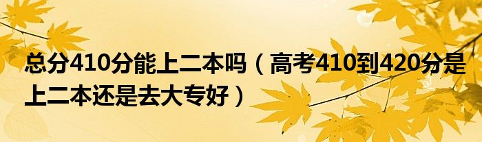 大家好,小高来为大家解答以上问题。总分410分能上二本吗,高考410到420分是上二本还是去大专好很多人还不知道,现在让我们一起来看看吧!