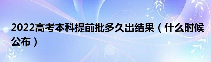 大家好,小高来为大家解答以上问题。2022高考本科提前批多久出结果,什么时候公布很多人还不知道,现在让我们一起来看看吧!