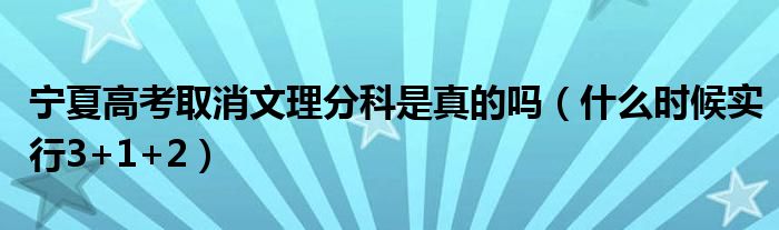 大家好,小高来为大家解答以上问题。宁夏高考取消文理分科是真的吗,什么时候实行3+1+2很多人还不知道,现在让我们一起来看看吧!