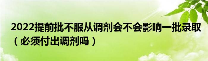 大家好,小高来为大家解答以上问题。2022提前批不服从调剂会不会影响一批录取,必须付出调剂吗很多人还不知道,现在让我们一起来看看吧!